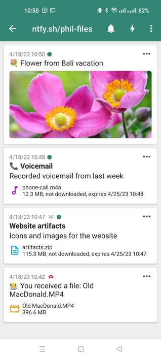 With ntfy attachments, you can send images, videos, and other files to your phone instantly - be it pictures from your surveillance camera, videos, or other documents