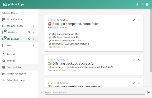 Want to send yourself notifications from a server or script somewhere? ntfy is the best option I've seen, hands down.